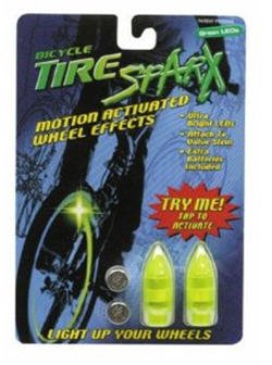 Motion activated, flashing valve cap light. Comes w/ 6-AG10 batteries.